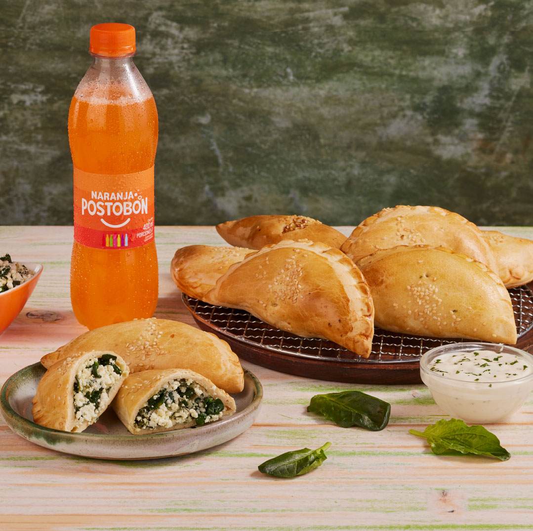 Exquisita empanada horneada de trigo rellena de espinaca fresca con queso ricota y campesino.