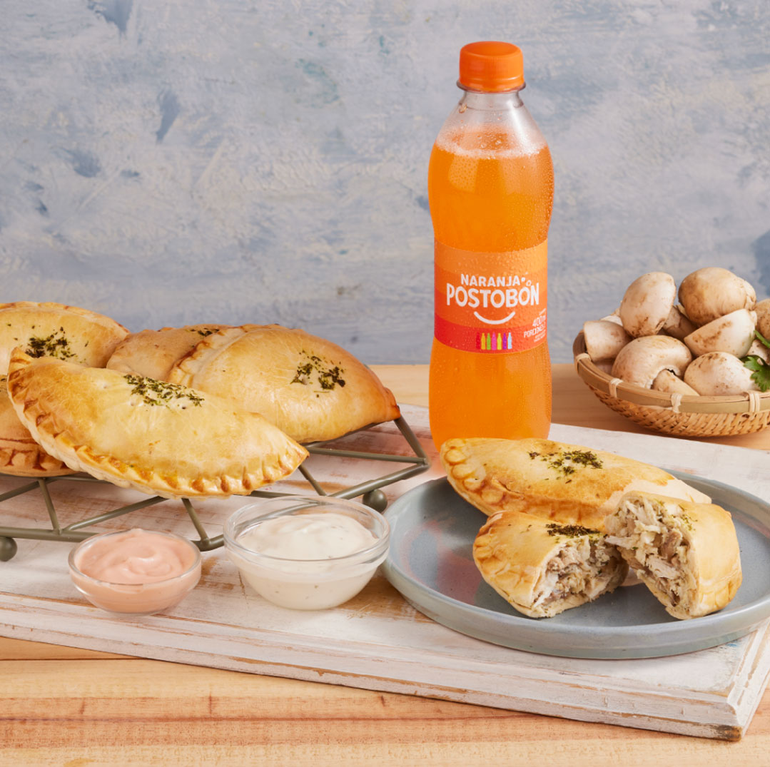 Empanada horneada de trigo rellena con exquisitos filetes de pollo desmechado en salsa bechamel con champiñones.