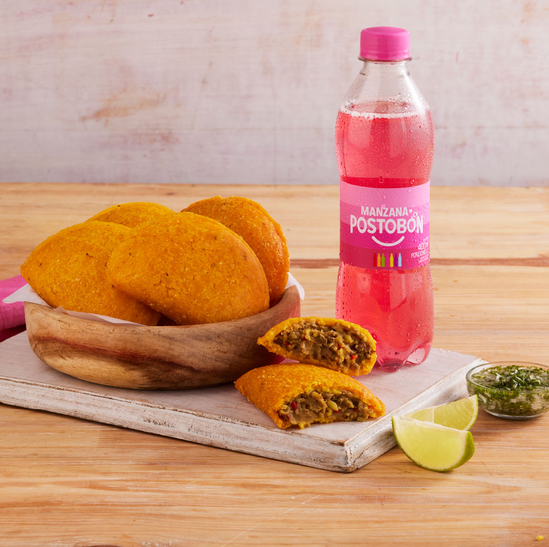 Deliciosa Empanada de maíz peto con carne de res, papa pastusa y guiso de la casa.